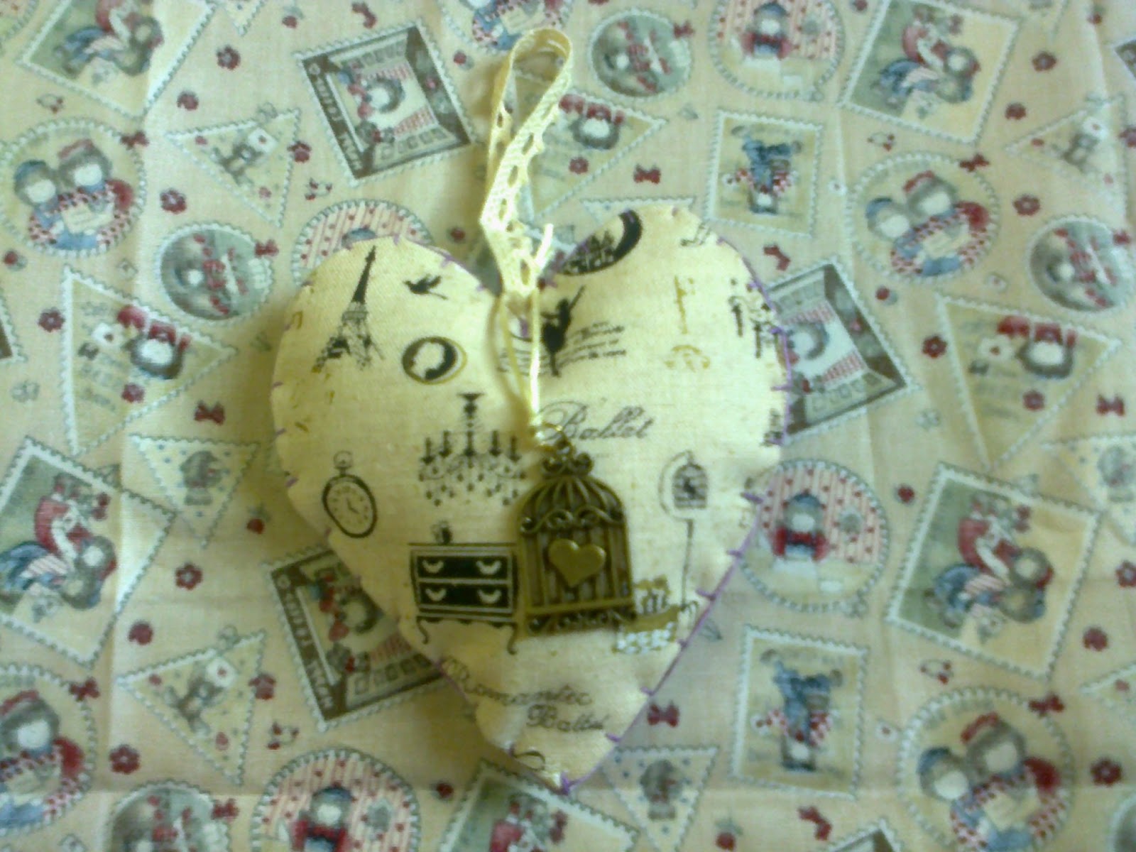 Heart is made of fabric and felt, hand-cut and sewn with love and